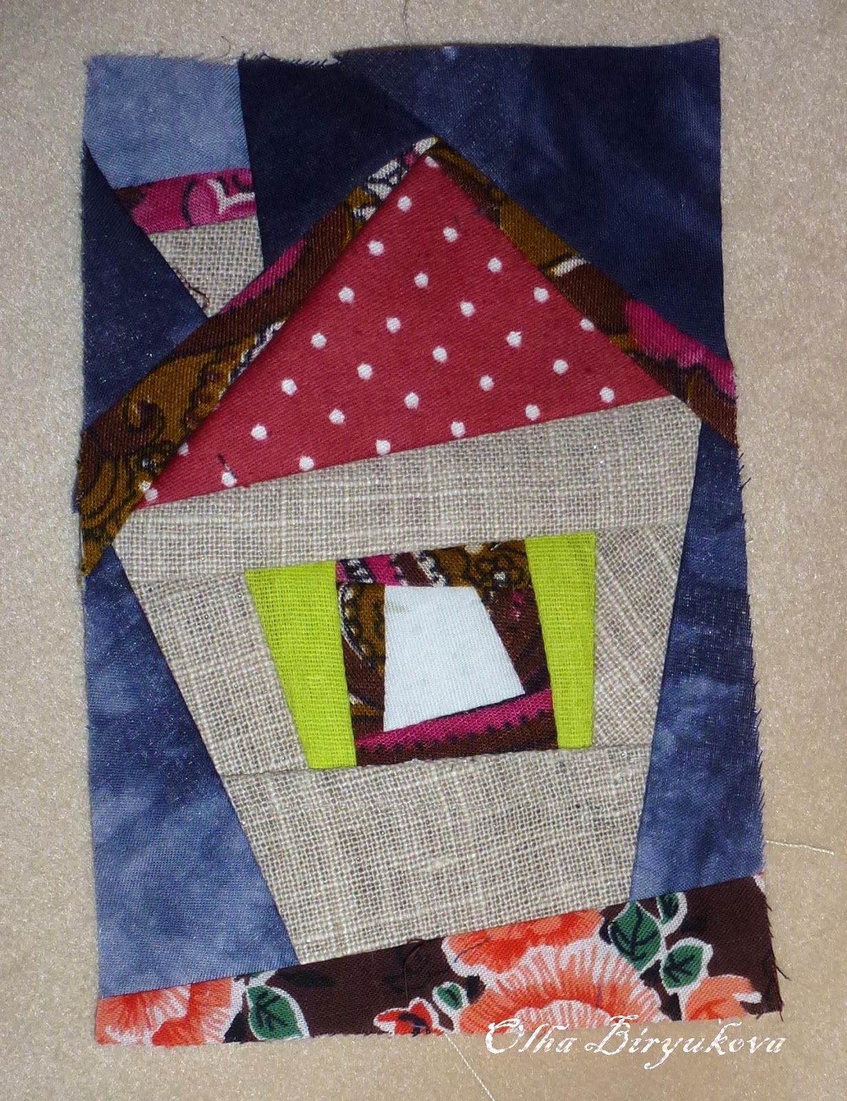 Потом, чтобы поработать с мелкими деталями, сшила вот такой маленький домик - по предложенной там же, на форуме, схеме.
