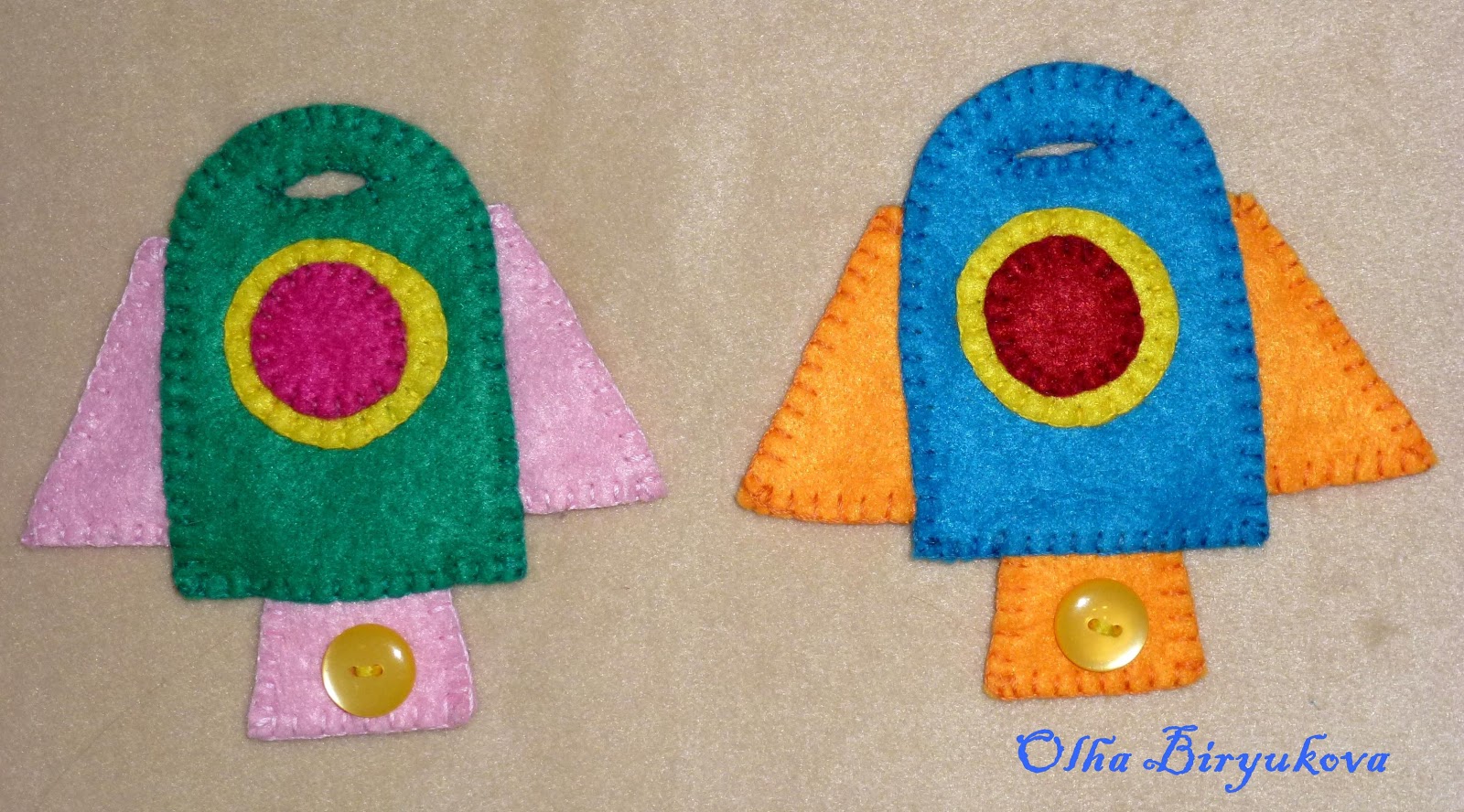 Фетр потихочнечку заканчивается, поэтому ракеты разные по цвету.